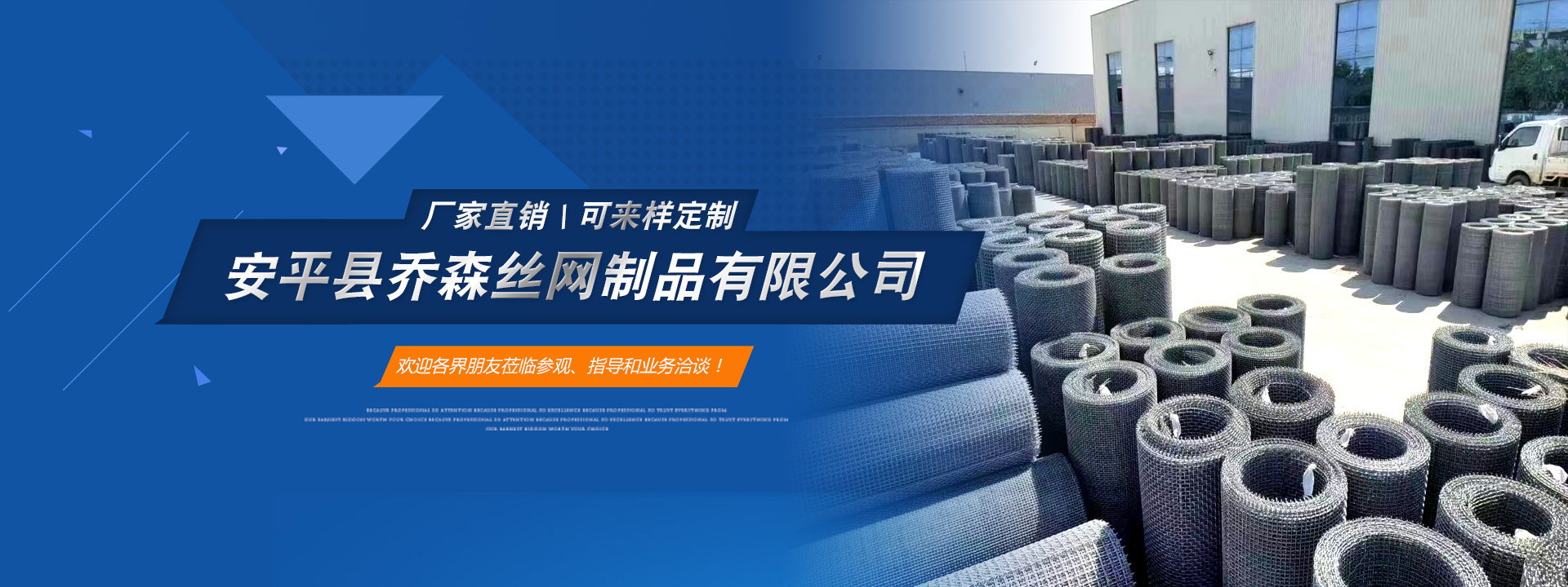 安平縣喬森絲網(wǎng)制品有限公司主營(yíng)產(chǎn)品:篩網(wǎng)、金屬裝飾網(wǎng)、沖孔網(wǎng)板、防滑板和軋花網(wǎng)。常年現(xiàn)貨供應(yīng)45號(hào)黑鋼絲編織篩網(wǎng)、熱鍍鋅鋼絲篩網(wǎng)、304不銹鋼篩網(wǎng)和冷鍍鋅鐵絲網(wǎng),加工定做耐磨65號(hào)錳鋼絲篩網(wǎng)、菱形孔防堵篩網(wǎng)、養(yǎng)殖用長(zhǎng)方孔鐵絲網(wǎng)、金屬裝飾網(wǎng)、盤(pán)條 礦篩網(wǎng)等各種鋼絲篩網(wǎng)和建筑用鐵絲網(wǎng)片,歡迎新老客戶(hù)前來(lái)咨詢(xún)洽談合作。
